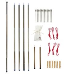 ブッシュクラフターズテントに使用される全てのポール、ペグ、ガイライン、コードスライダーのセット。¥176,000