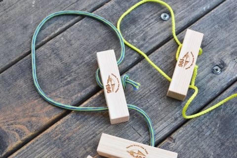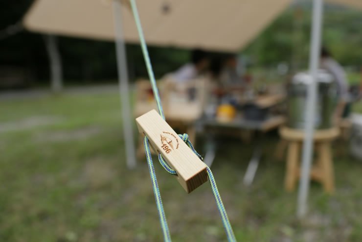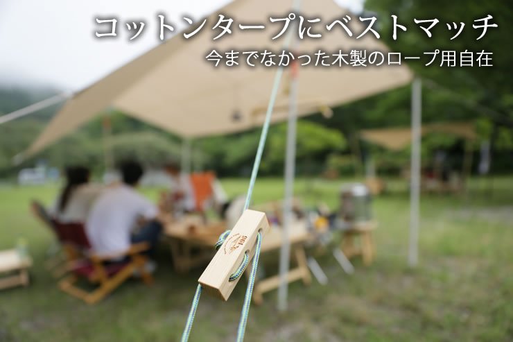 コットンタープとベストマッチする木製自在(ロープタイトナー)