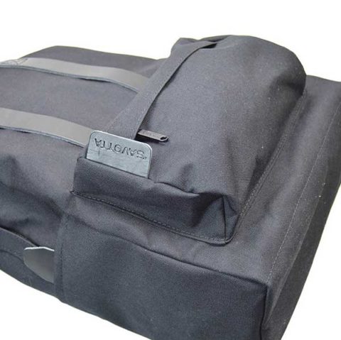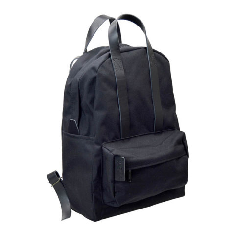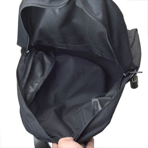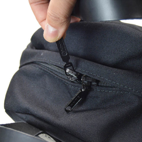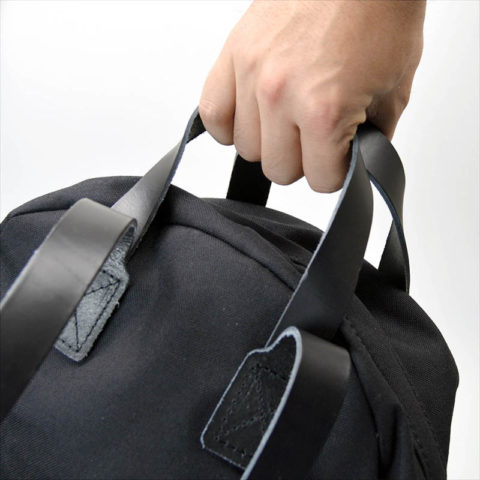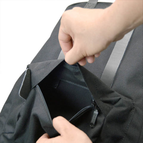 両側面にフラットポケットと、正面にジッパー付きポケットを配した日常使いモデルです。
