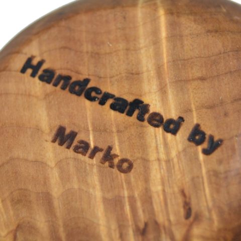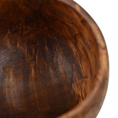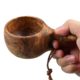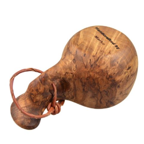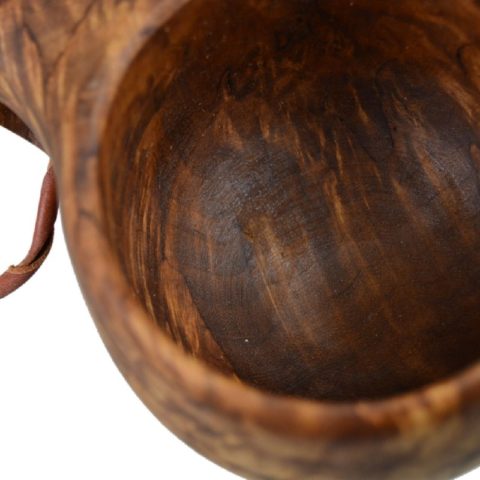 シラカバのコブ材のククサはカーリーバーチのククサに比べると、さらりと滑らかな杢目が特徴。