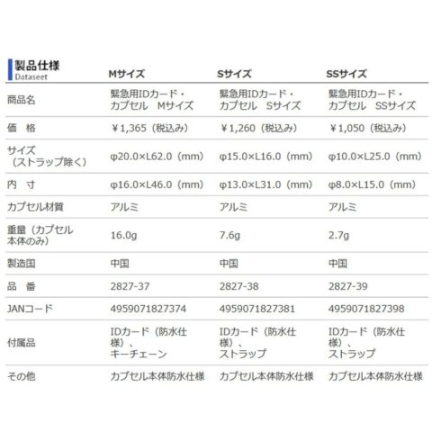 【商品名】緊急用IDカード・カプセル