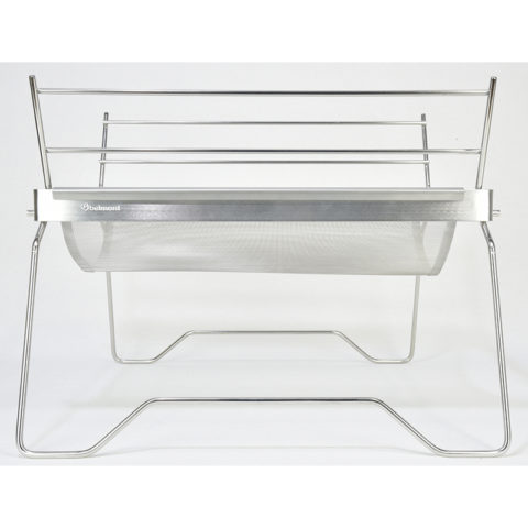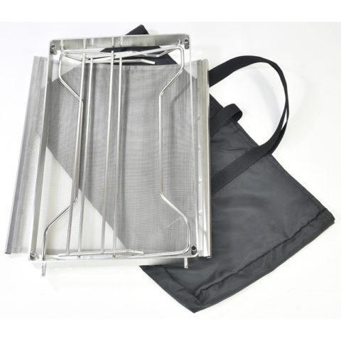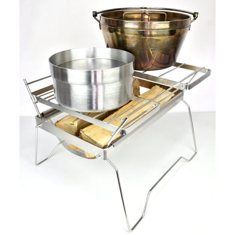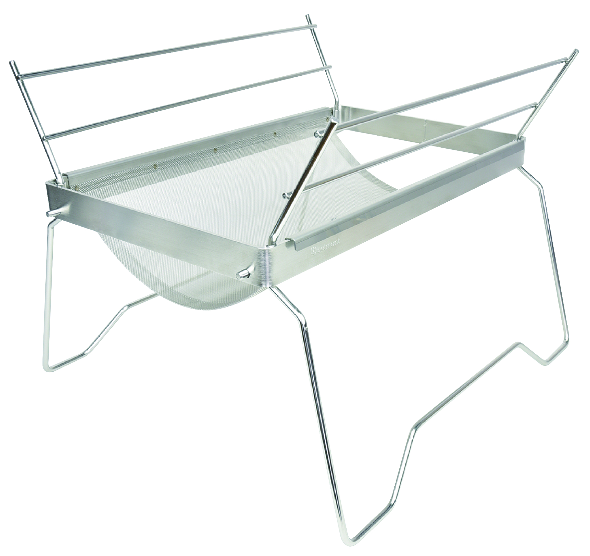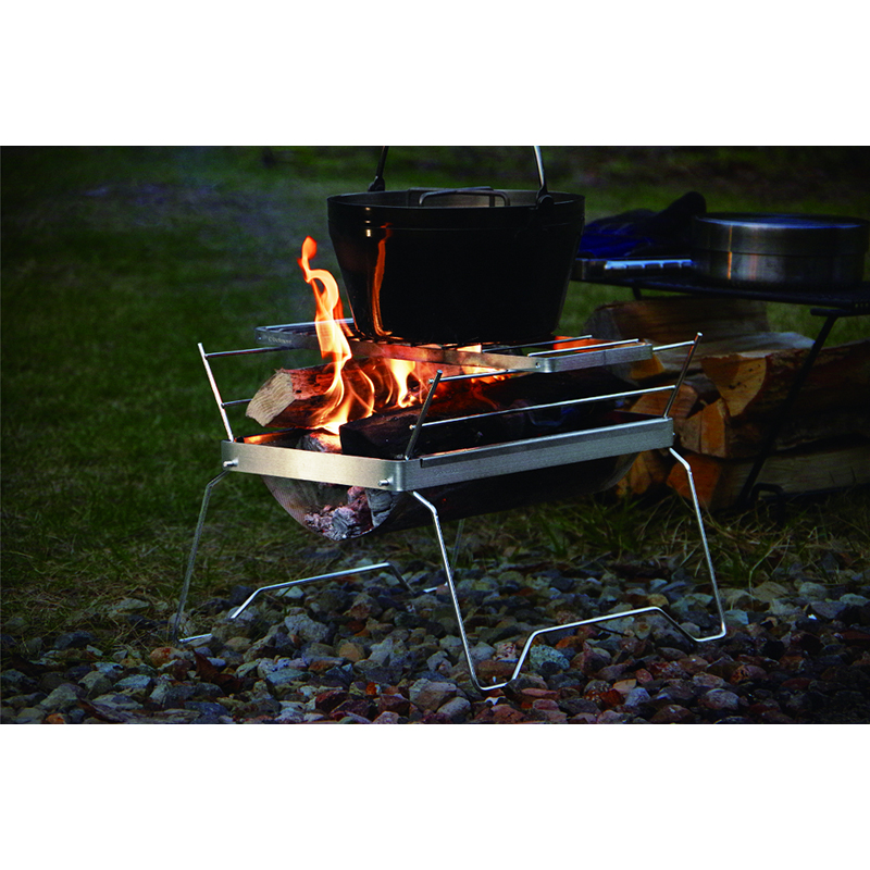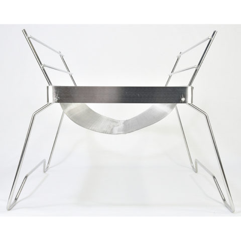 重量は2.2kgと軽量ながらワイヤーシェルフをフレーム左右に差し込むことで、薪の乾燥や当社製の五徳を使用することで調理なども可能。2段になっているので火力調整もできる。