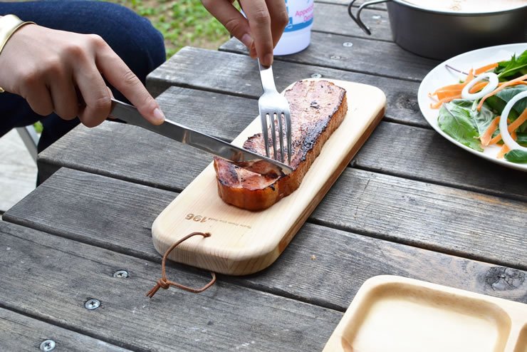 使い勝手のいいサイズ。ソロでも使える、四万十ひのきのまな板です。