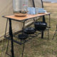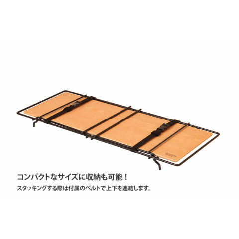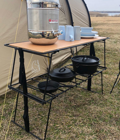 スタッキングラックは収納量に合わせて増設してキャンプギアを使いやすく収納したり重ねて使うことで、カウンターテーブルのように使えるマルチアイテム。
