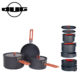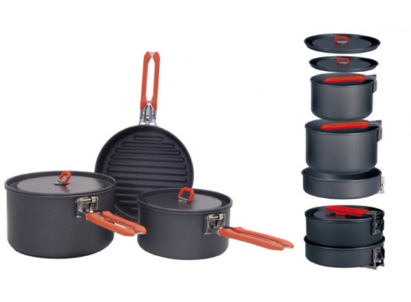 剥がれにくく、強度のあるハードアノダイズド加工されたアルミ製クッカーです。3種類のクッカーでそれぞれ料理をする事ができます。