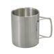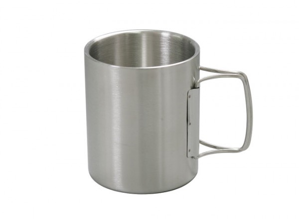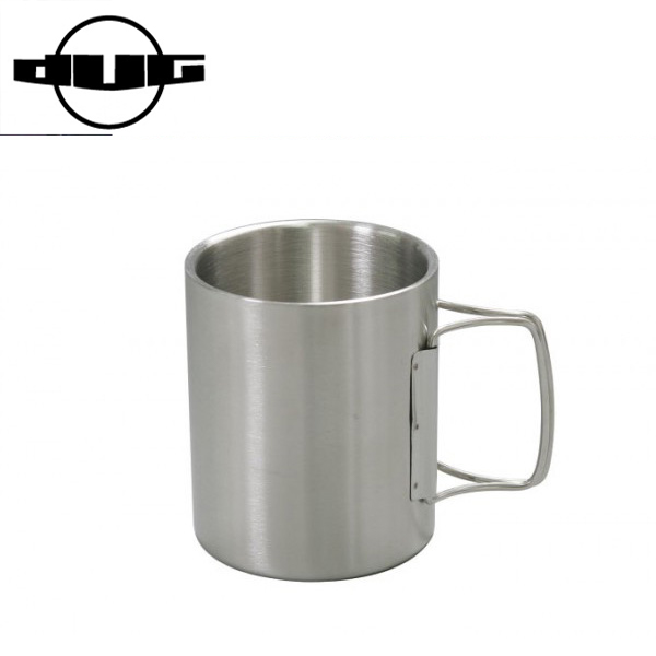 通常のシングルマグに比べて保温、保冷の効果があるカップです。シングルのカップに比べ熱い飲み物等を入れた際に持った時に手が熱くなりにくいのが特徴です。取っ手はフォールディングタイプの為、収納しやすい構造になっています。