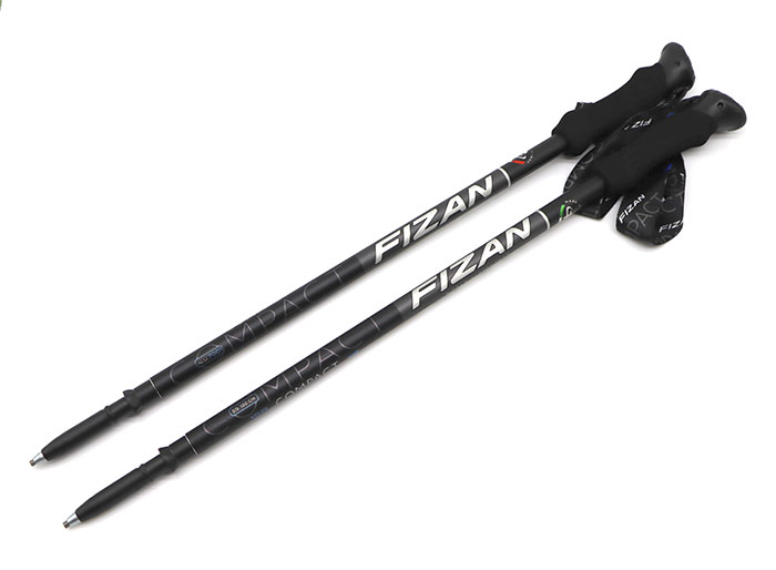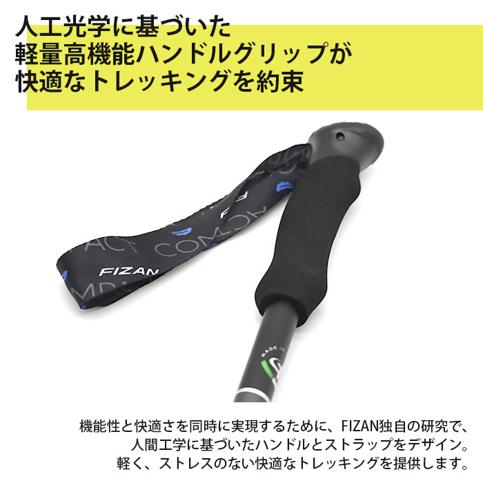 FIZAN フィザン 軽量 可変3段 トレッキングポール 58-132cm COMPACT Black 2本セット FZ-7102 I型