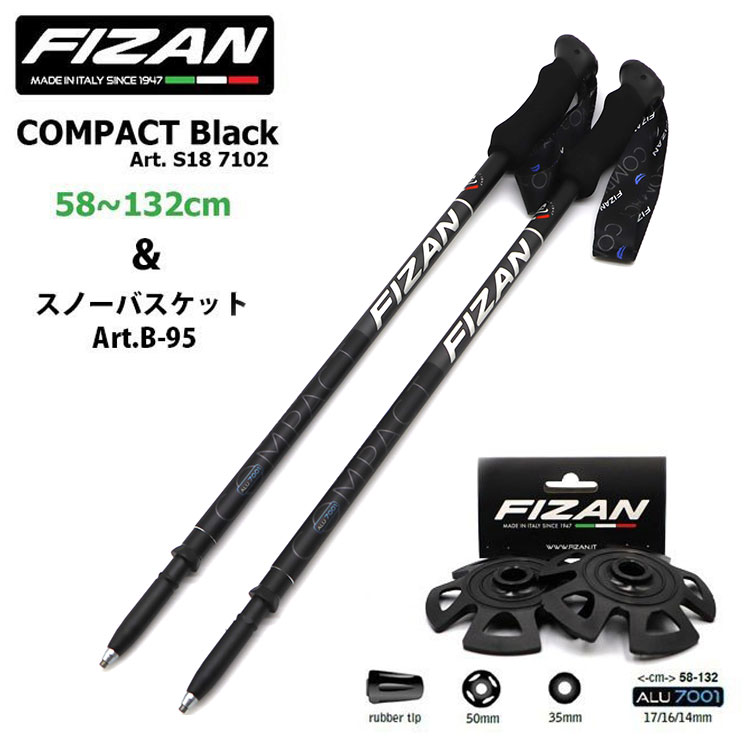 【スノーバスケット Art.B-95 セット】FIZAN トレッキングポール 58-132cm 2本セット black FZ-7102