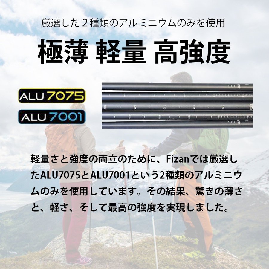 FIZAN フィザン 世界最軽量 可変4段 トレッキングポール 49-125cm COMPACT4 Red 2本セット FZ-7105 169g アルミニウム I型 新型ロックシステム 高強度 高対負荷イタリア製