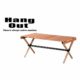 天板、フレーム部分にはレッドオークのソリッドウッドを贅沢に使ったアウトドアテーブル。レッドオークの美しい木目はインテリアのソファテーブルとしても◎