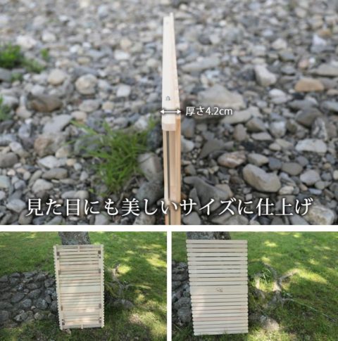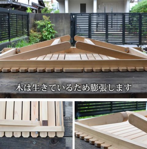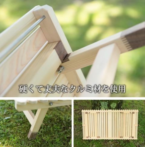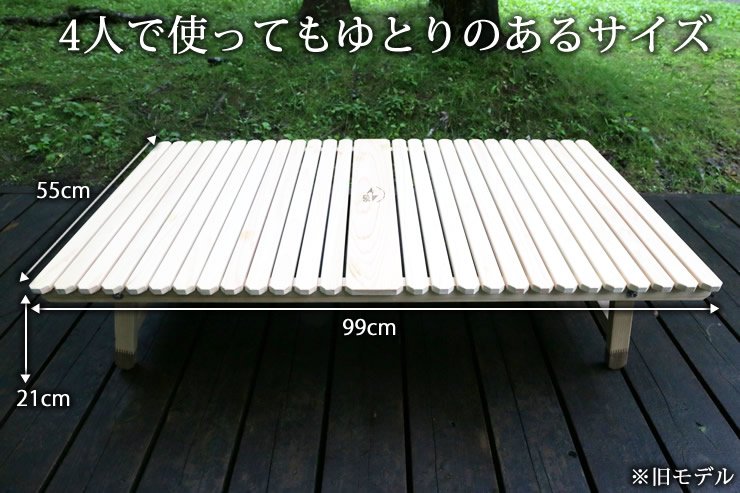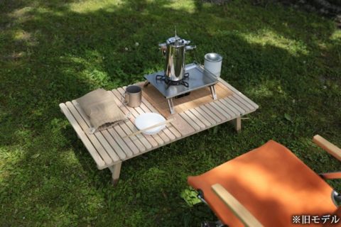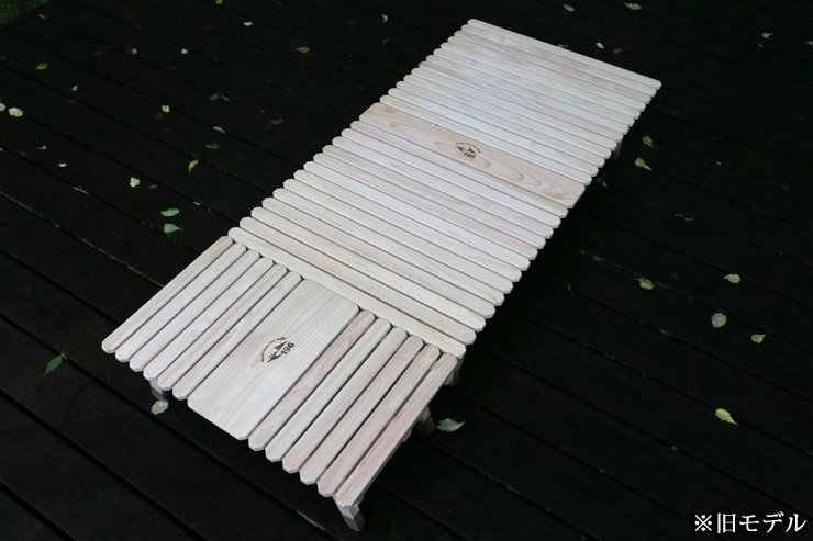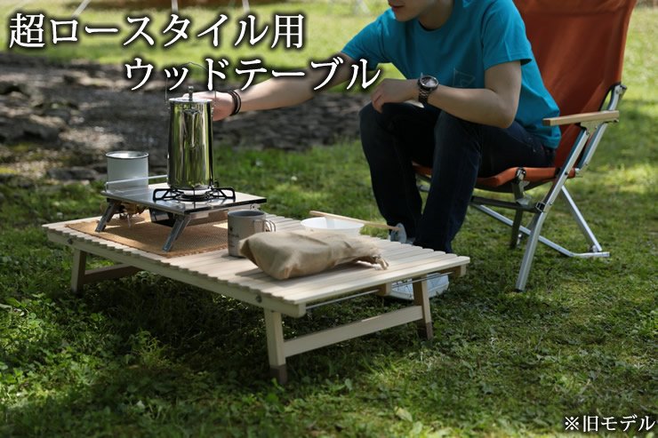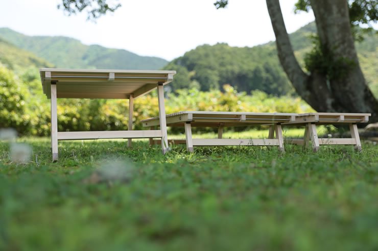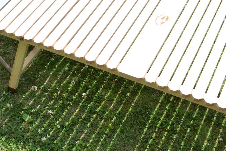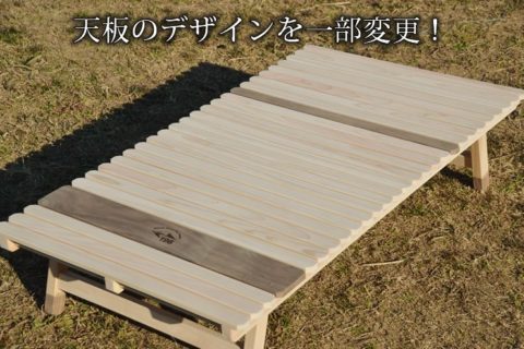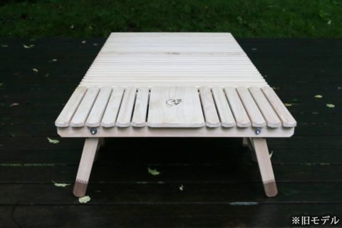 ブルーリッジ(BlueRidge)チェアーやBYER(バイヤー)メイラウンジャーが一番使いやすいロースタイルキャンプ用土佐ひのきのウッドテーブルです。