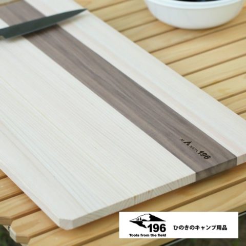 キャンプで使いやすい大きな四万十ひのきのまな板。プレートとしても使えるのでキャンプ料理に大変重宝します。