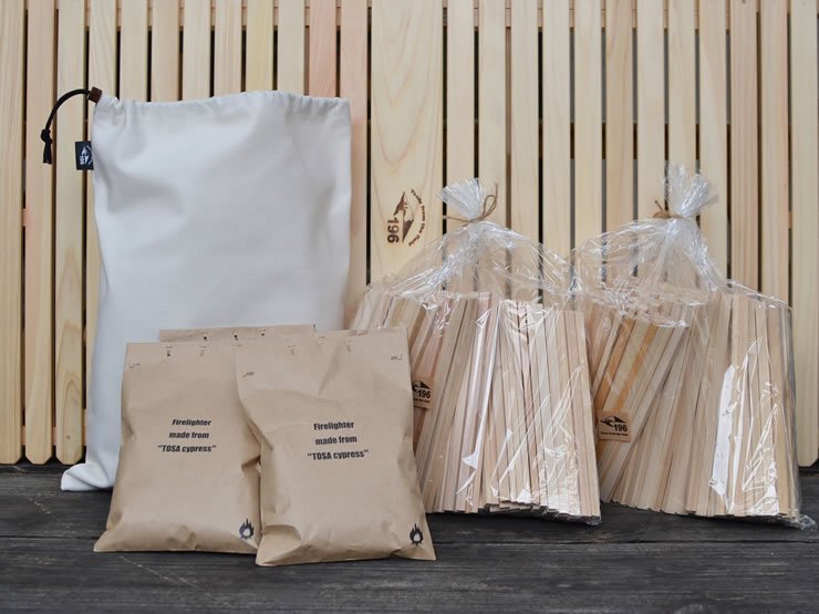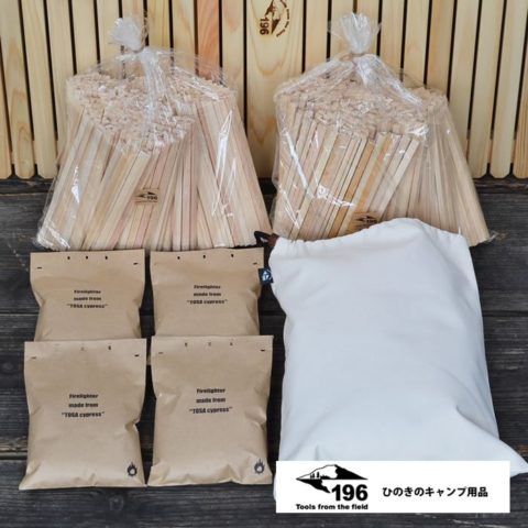 巾着袋:1つ 着火剤:4つ 焚き付け用ひのき2kg:2つ
