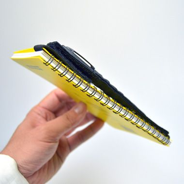 表紙に縦に巻いて使うことも、ノートを丸ごと巻いて、不意な展開を防ぐ使い方もできます。