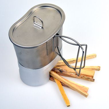 キャンティーンカップと一緒にスタックできるウッドストーブです。