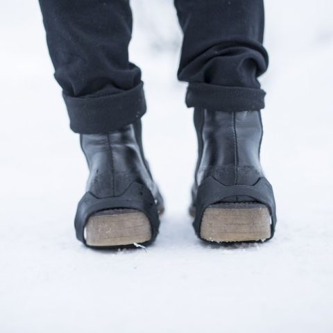 靴に装着して履くタイプのスパイク付き滑り止めです。