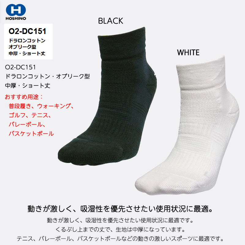 HOSHINO(ホシノ)V-System オブリーク型ソックス O2-DC151 ドラロンコットン・オブリーク型 中厚・ショート丈