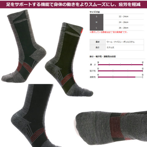 通常のソックスと同じくらいの丈で、登山以外にも寒い冬場の普段履きなどにも最適です。