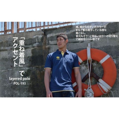重ね着風の袖・裾がツートーンカラーになったレイヤードポロシャツ。ベーシックなボディカラーにインパクトのあるビビットカラーがアクセント。