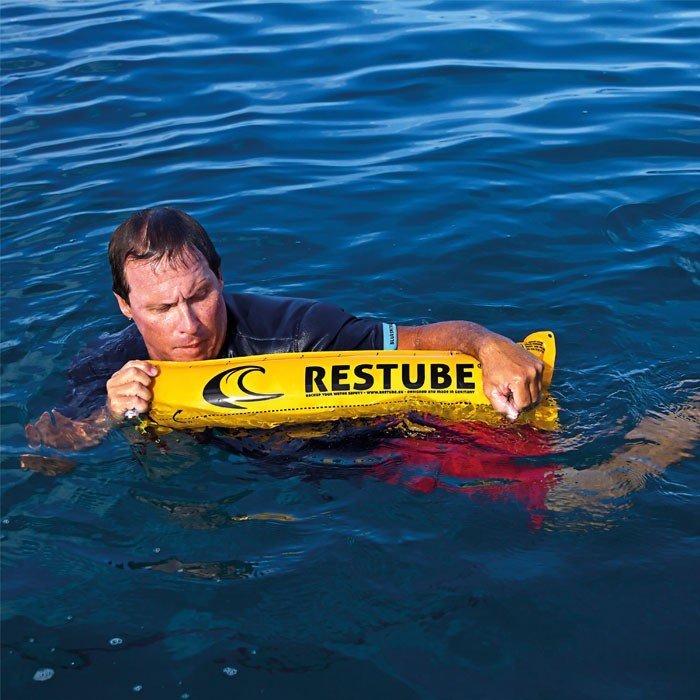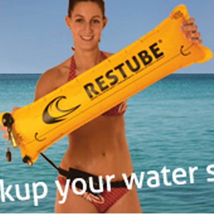 “レスチューブ”(RESTUBE)はヨーロッパにて数々の、オープン ウォータースイミング、トライアスロン等の大会にて採用されています。小型、軽量の為、装着感も少なく、いざという時の安心から、競技者、運営者ともに、とても好評です。中には、レスチューブの膨張が、リタイヤの合図とされ、迅速なレスキューが可能となっているものもあります。また、レスキュー体制が無い、個人の練習には、必須のアイテムとなってきました。