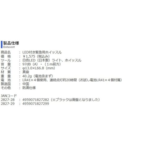 【ツール】白色LED(日本製)ライト、ホイッスル