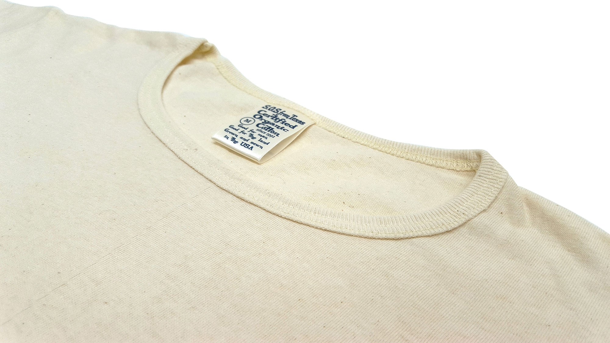 SOSでは5月中旬に種植えを行い、テキサスの広大な大地と穏やかな天候のもとに育まれ、11月下旬に収穫されます。収穫されたオーガニックコットンは全てノースカロライナ州の認定工場にて紡糸され、生地、製品へと姿を変えます。Gary氏はその全ての行程を自身の目の届く場所で行うことにこだわり、品質管理も徹底しています。原料である綿花の栽培から製品の縫製まで一貫してアメリカ国内で行う数少ないブランドです。