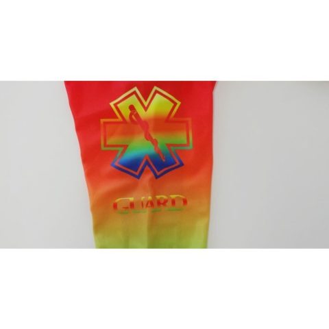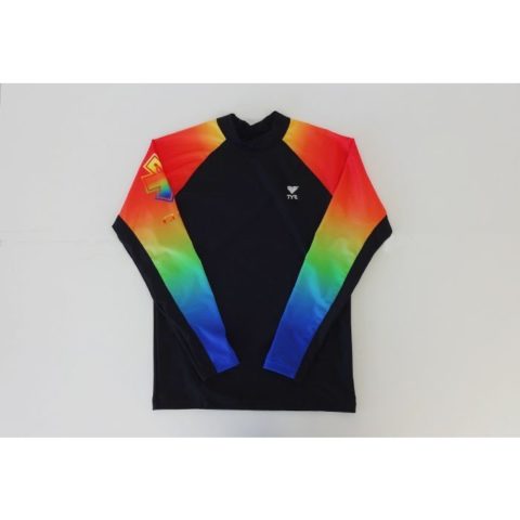 スターオブライフ(STAR OF LIFE)のマークが入ったスイムウェアはライフセーバだけでなく、オープンウォーターや、トライアスロンのビギナーの方にもモチベーションを向上してくれる事でしょう。またレインボーカラーは特に視認性に優れているので、オープンウォータースイミングやガード活動時など、海での使用に最適です。