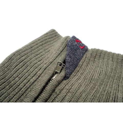 また首まで暖かく保護できるハイネックのジップアップですが、ジッパーがあごにあたり、冷たさや不快感を感じないよう、あごをしっかり保護するジッパーガードがついています。