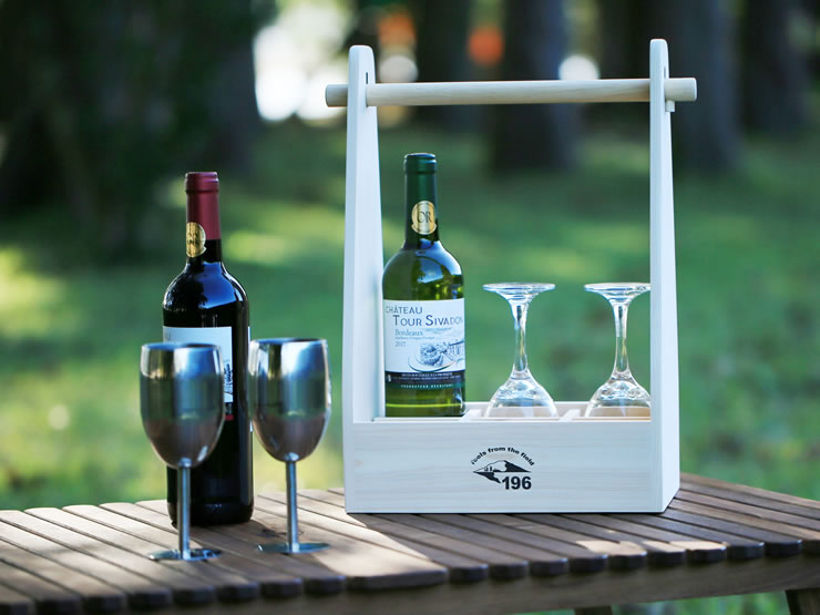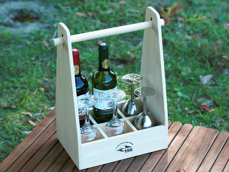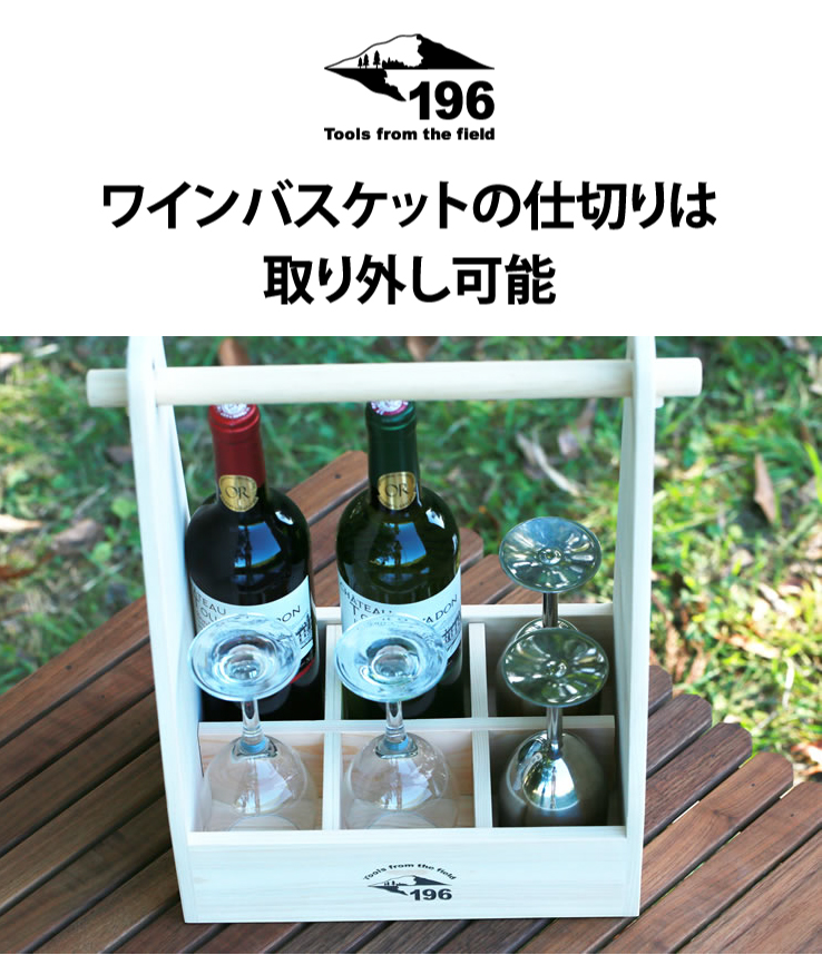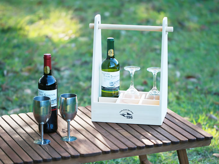 アウトドアでワインを持ち出すのに最適なウッドバスケットです!