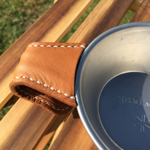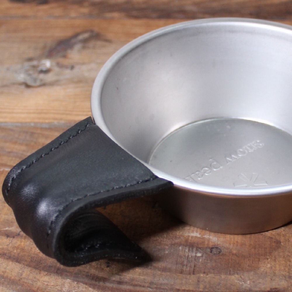スノーピーク/snow peakシェラカップハンドル用レザーカバーです。キャンプやトレッキング、山登りをされる方でお持ちの方は多いのではないでしょうか?