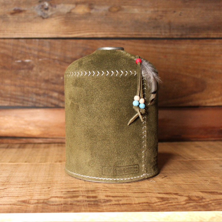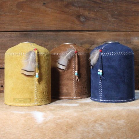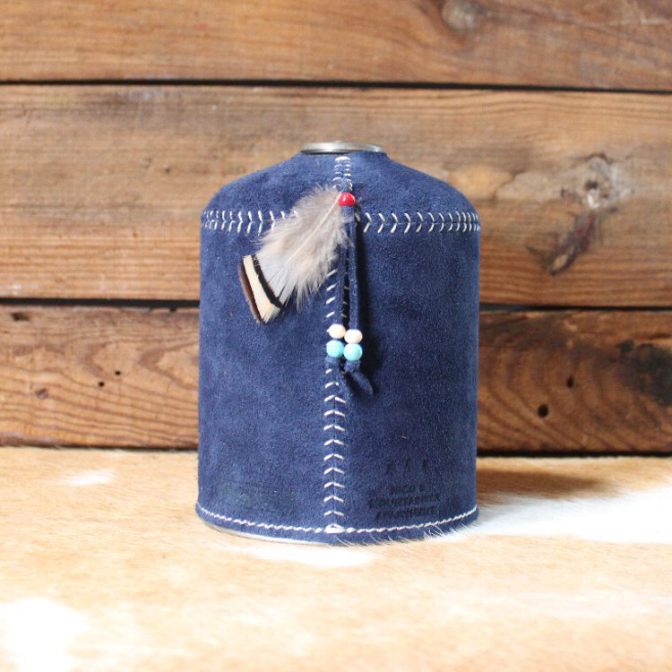[NICO&MOUNTAINEER APARTMENT]とのコラボアイテムのスウェード皮革素材のODガス缶カバー。
