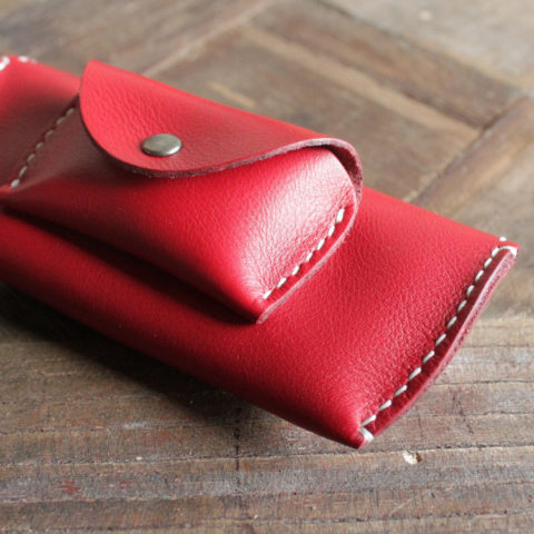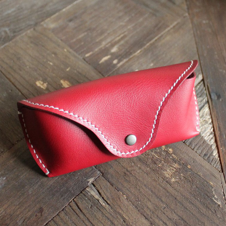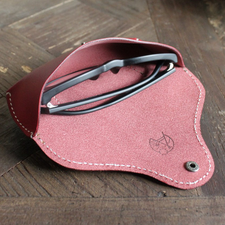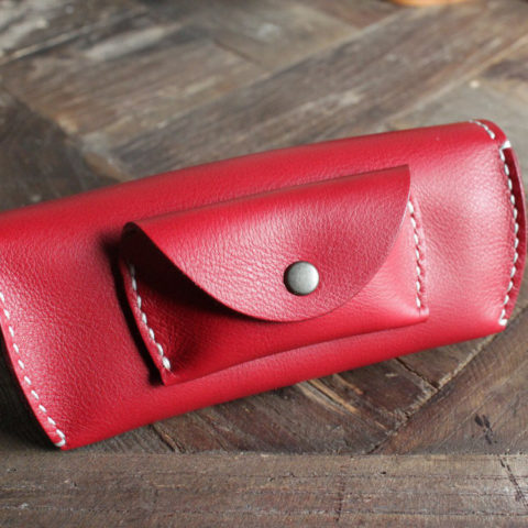 国産の天然レザーを使用したコンタクトケースポケット付眼鏡ケースです。