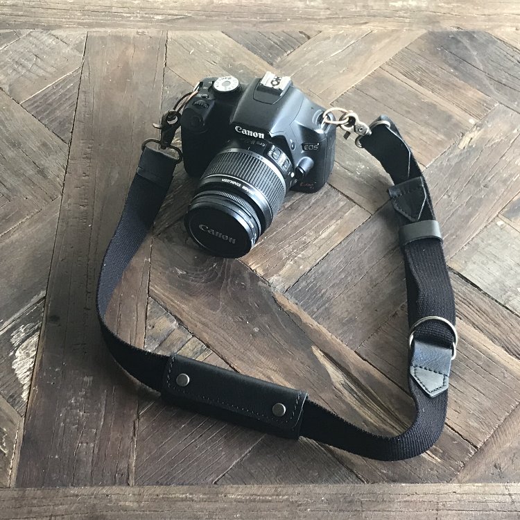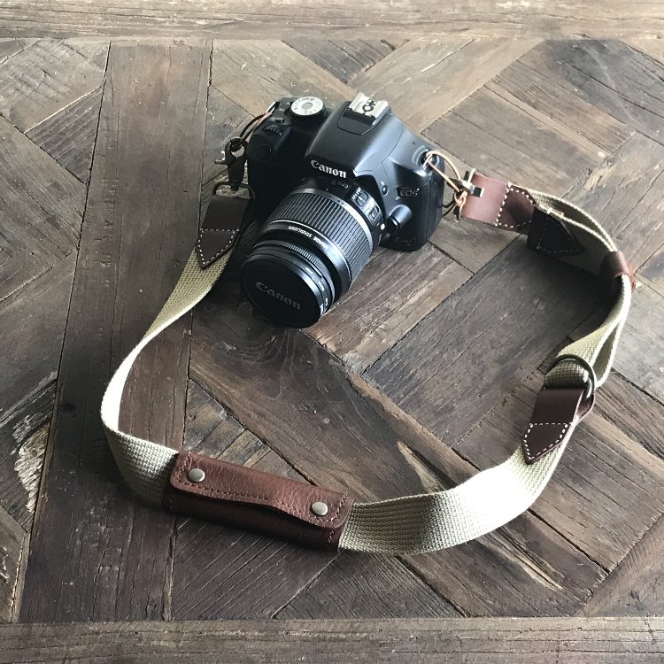 カメラストラップでも水筒のストラップでもアイデア次第でマルチに使えるレザー使いのストラップです。