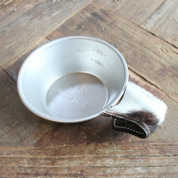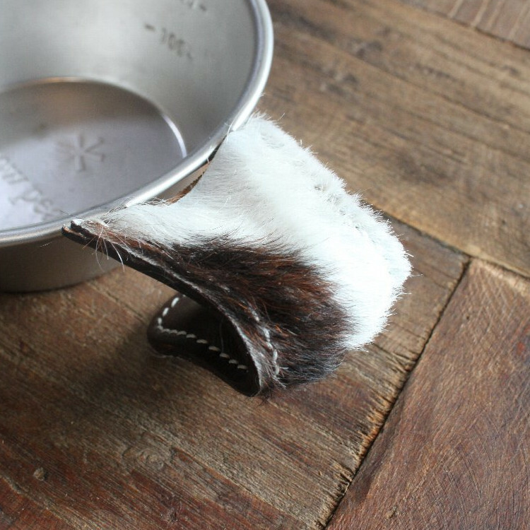 人気のスノーピークシェラカップハンドルカバーのハラコ使いタイプ。