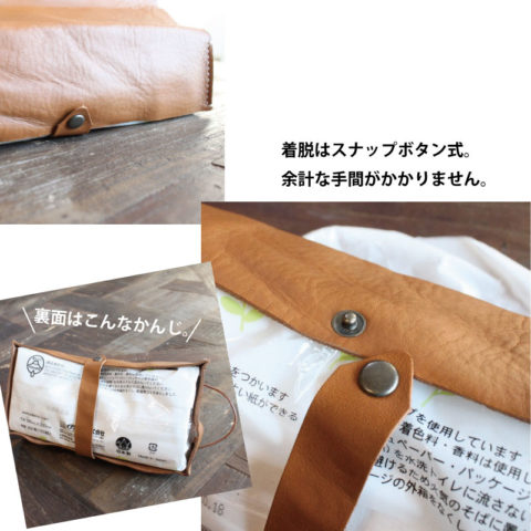レザー特有の風合い豊かな表情をもった革端部分(END MATERIAL)で作ったカバーを作りました。