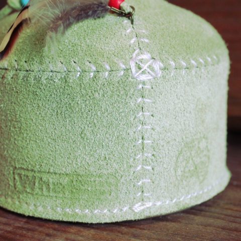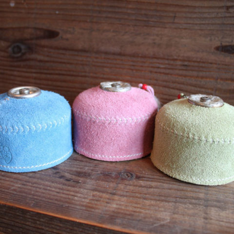 スウェード皮革素材のODガス缶カバー。