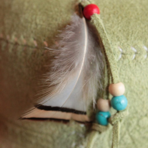 天然フェザーとビースをあしらいネイティブアメリカンの雰囲気。