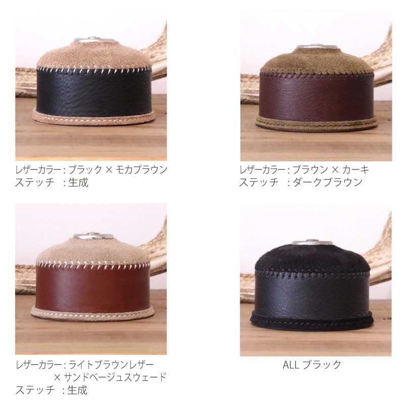 レザーの雰囲気が無機質になりがちなガス缶をドレスアップします。アウトドア・キャンプ用品としても必需品のランタンやバーナー。