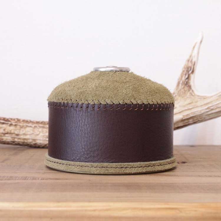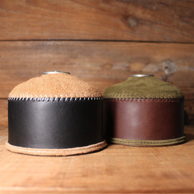 それらのガスタイプに使用するガス缶(OD缶・アウトドア缶)の本革レザーを使ったカバーです。