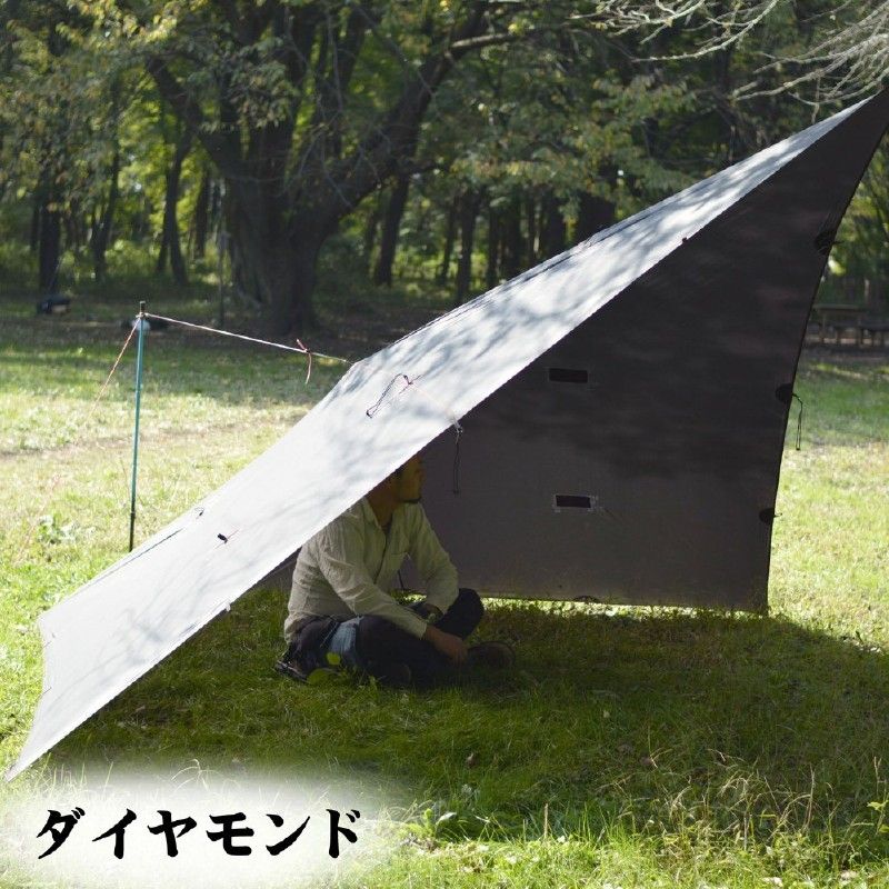 サイズは約3M×3Mで、ソロのタープ泊や、ペアの日帰りにちょうど良いサイズとなっております。
