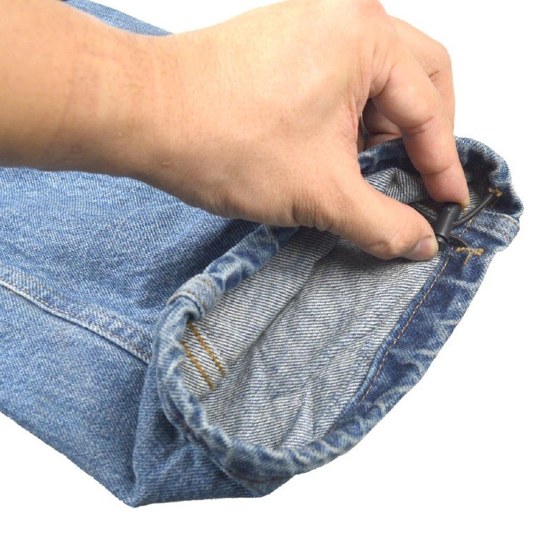また、裾(足首)にはショックコードが仕込まれていて引き絞ることができるので、ぺったん靴や腰パンでも裾を踏まないよう微調整ができます。