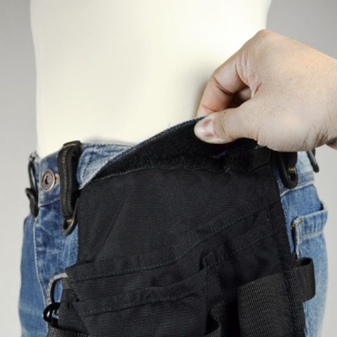 腰の両サイドに装着されたこのポーチ型のポケットは着脱可能で、メインストレージの容量は500mlペットボトルを2本収納できるほど!