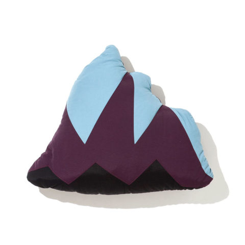 ユニークなマウンテンをデザインしたクッションが、ブランケットに早変わり。頭を通すとポンチョにもなります。