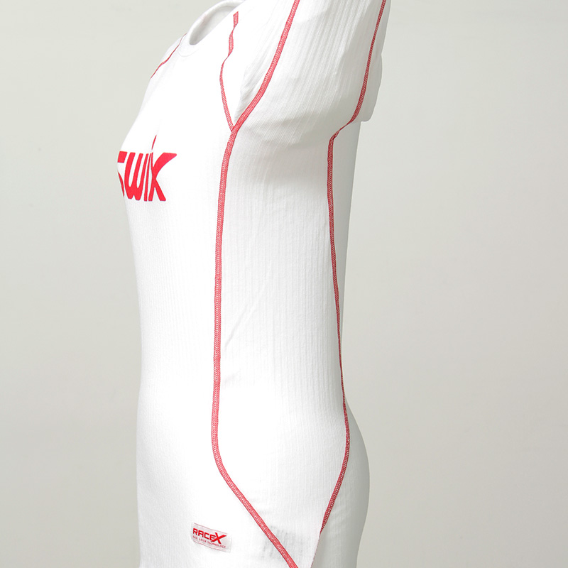 北欧を代表するアウトドアメーカーのSWIXが、アスリートのために開発したベースレイヤー「Race X Bodywear」。運動量の多いスポーツでの使用を想定したもののため、保温性が高く、汗を素早く逃がしてくれる優れたアウトドア用インナーです。 素材はポリエステル100%ですが、実際に手に取ってみると、コットンのような優しい風合いです。裏地側に凹凸を作り体との接地面を少なくすることで、汗を発散しやすい構造で、大量に汗をかいても不快な張り付きを軽減してくれます。 また、4方向に伸びるストレッチでどんな動きも妨げることなく、ストレスのない快適な着心地です。 薄くて軽いのにじんわりと温かいので、スポーツ時以外でも着ていたくなります。