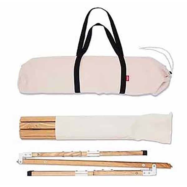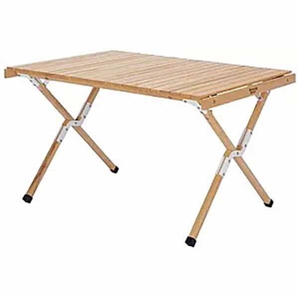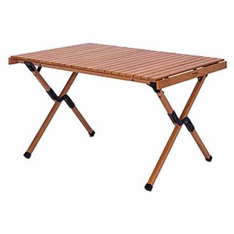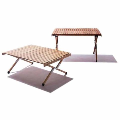 今やおしゃれサイトの定番となったロールアップ式のウッドテーブル、天板サイズは1000×700と4人使用でちょうどいいサイズ。