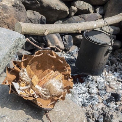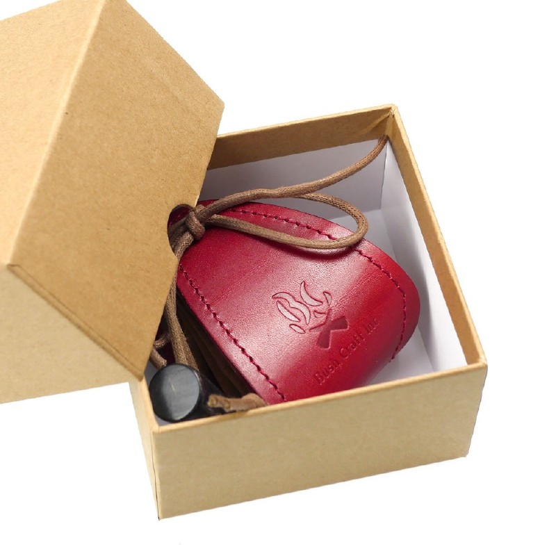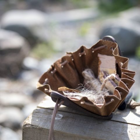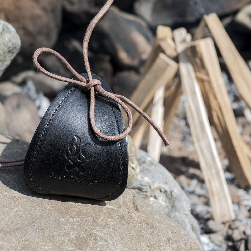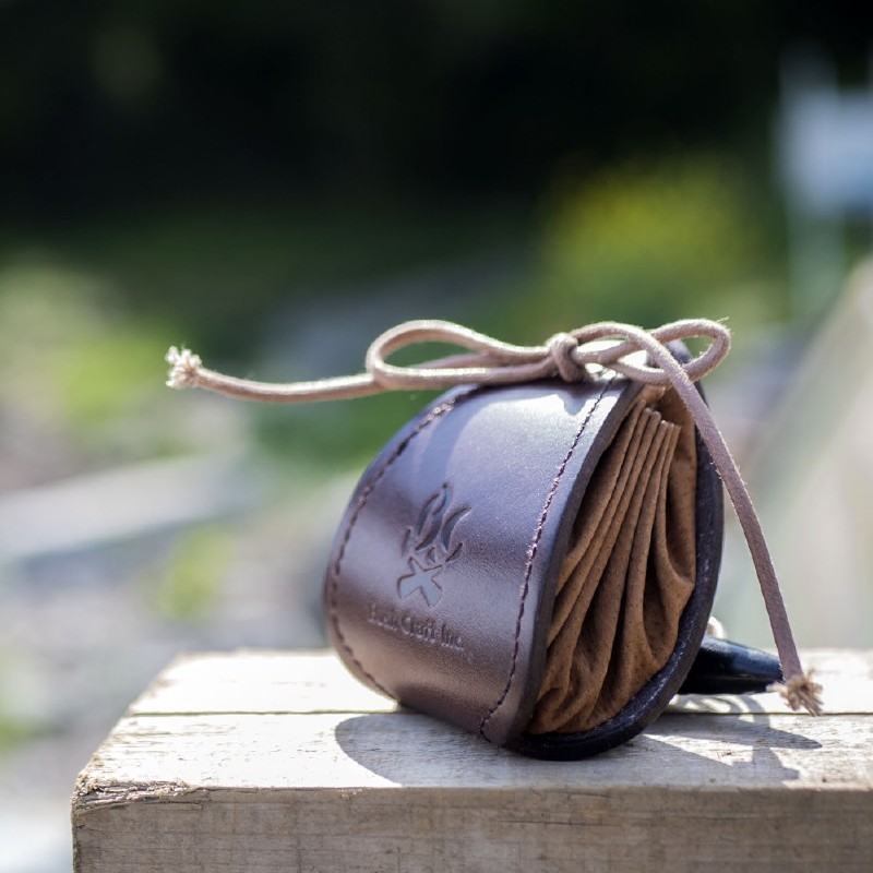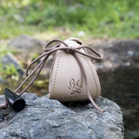 ブッシュクラフト的火おこしでは、着火のきっかけに必ず必要になる火口(ほくち)。これを英語でティンダー(Tinder)と呼びます。麻紐や、シラカバや杉の樹皮、松脂などを入れておけるコンパクトでオシャレなポーチになりました。