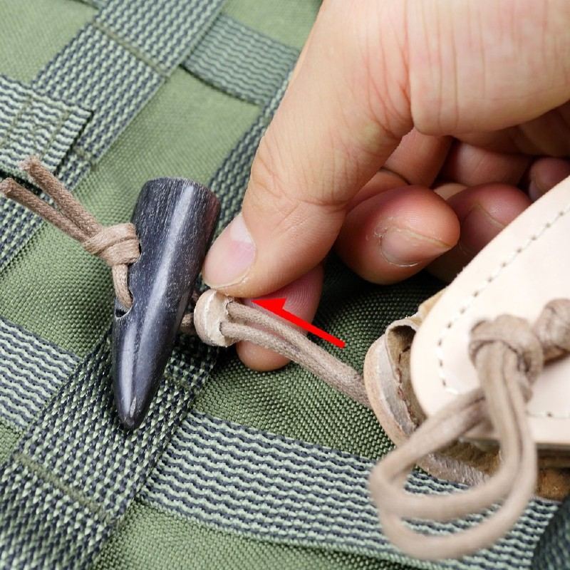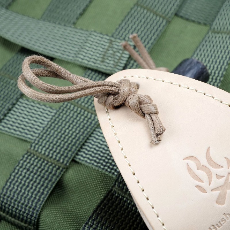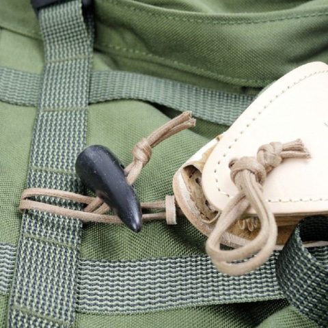 そのままバッグに放り込んでも良いですが、ブッシュクラフターの必需品らしくベルトに装着することも出来るよう、トグルが付いています。トグルをベルトに一周させて輪の中にトグル通したら引っかかりますので、ブタ鼻を上にスライドしてしっかり止めてください。