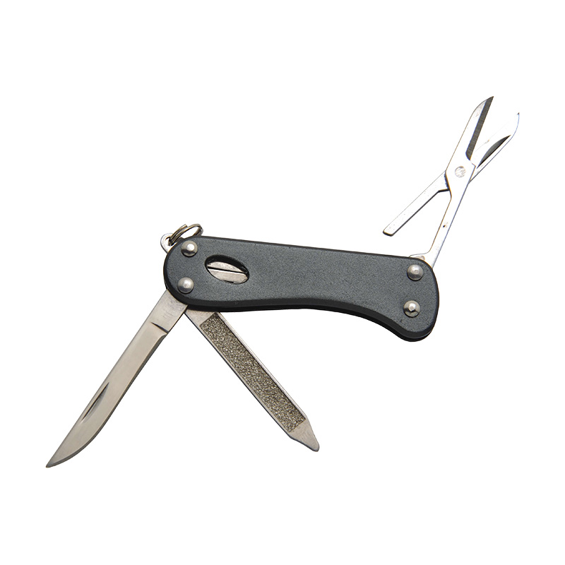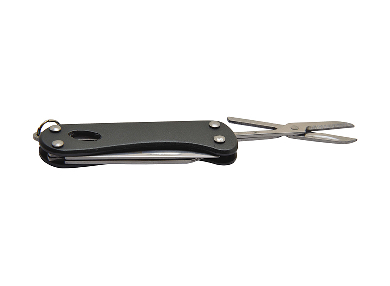 ナイフ、はさみ、爪やすり、ネイルクリーナー、2.5mmマイナスドライバーの5つの機能を備えた多機能キーホルダーナイフ。
