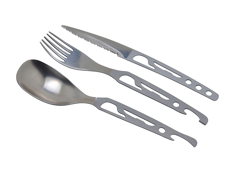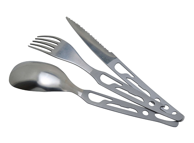 丈夫で耐久性に優れた軽量なこのアウトドア用カトラリーセットは、とても美しいミラー仕上げが施されています。