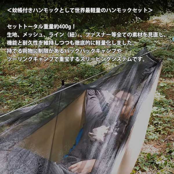 <蚊帳付きハンモックとして世界最軽量のハンモックセット>